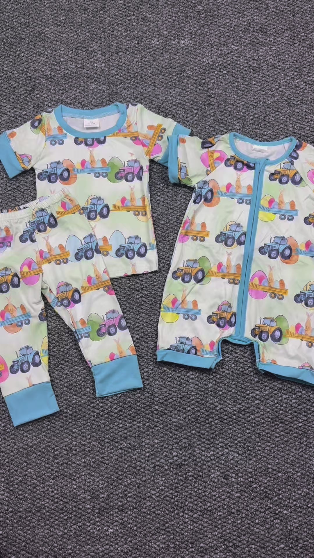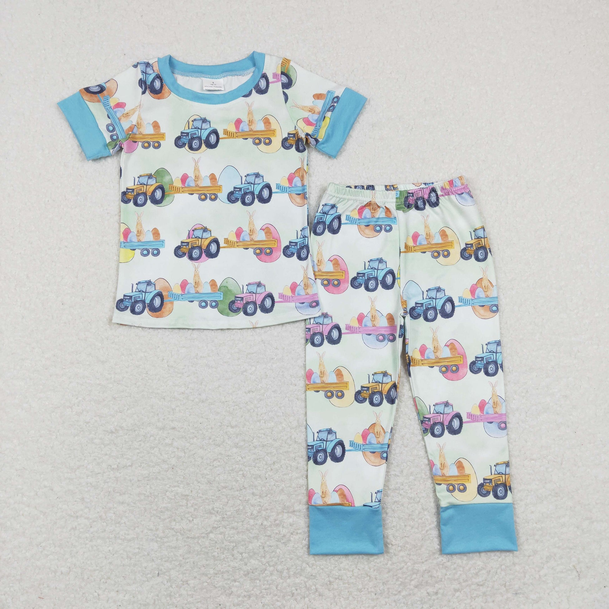 Tractors Eggs Bunny Print Sibling Easter Matching Clothes