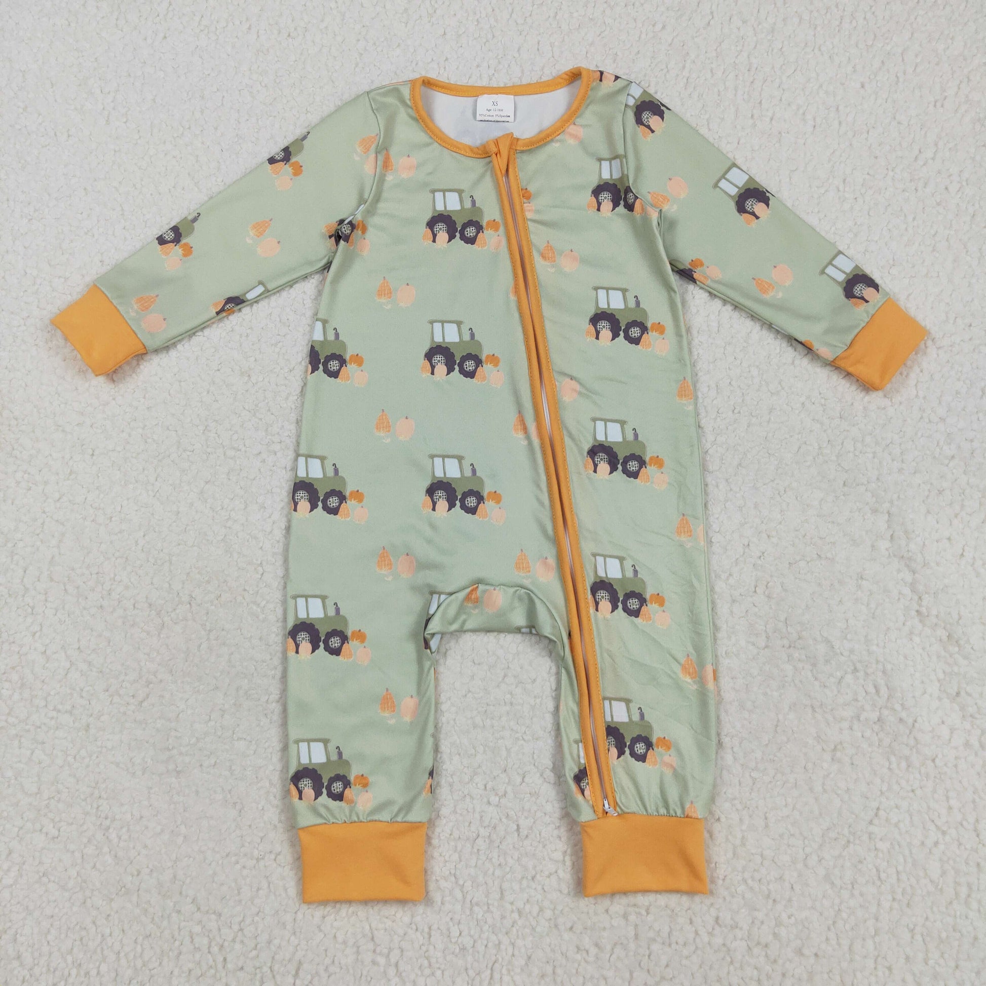 Tractors Pumpkin Print Kids Fall Pajamas Matching Clothes Sibling Wear