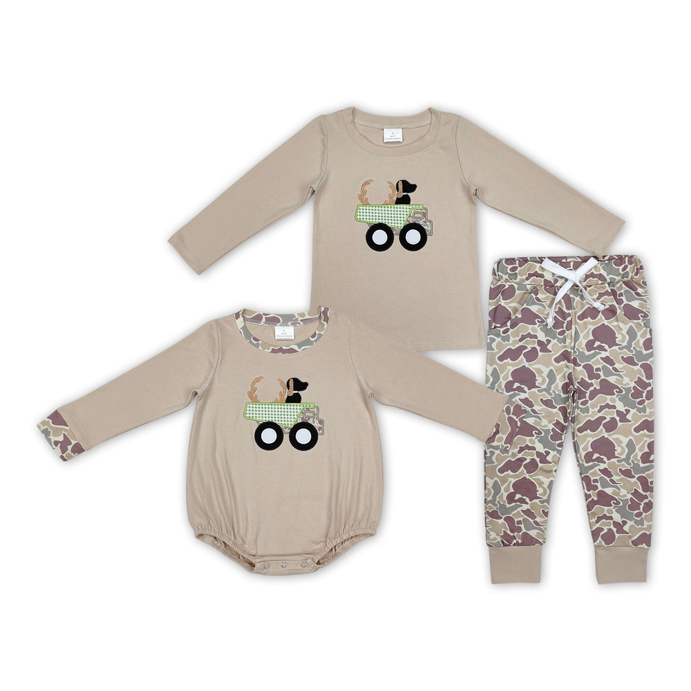Truck Dog Embroidery Camo Print Brothers Hunting Matching Clothes