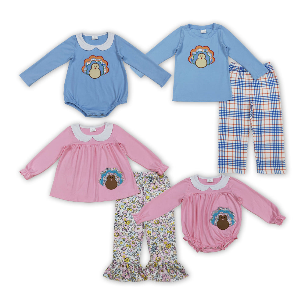 Turkey Embroidery Sibling Thanksgiving Matching Clothes