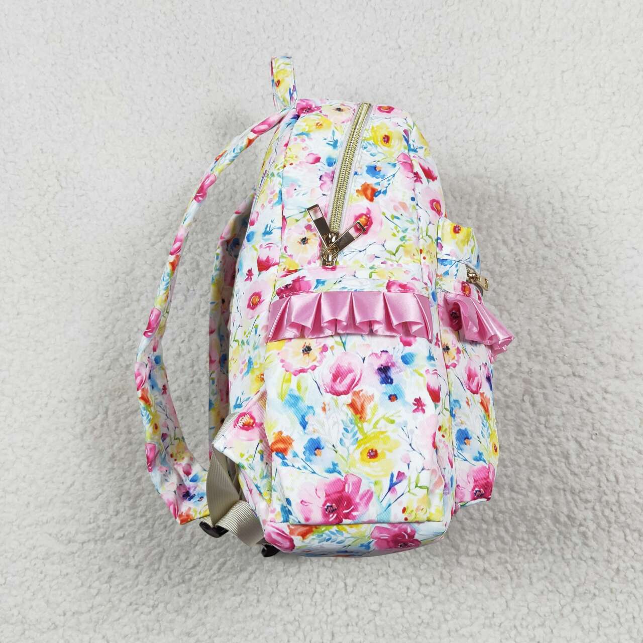 USA-Shop BA0174 Pink Flowers Print Ruffle Backpack Girls Bag