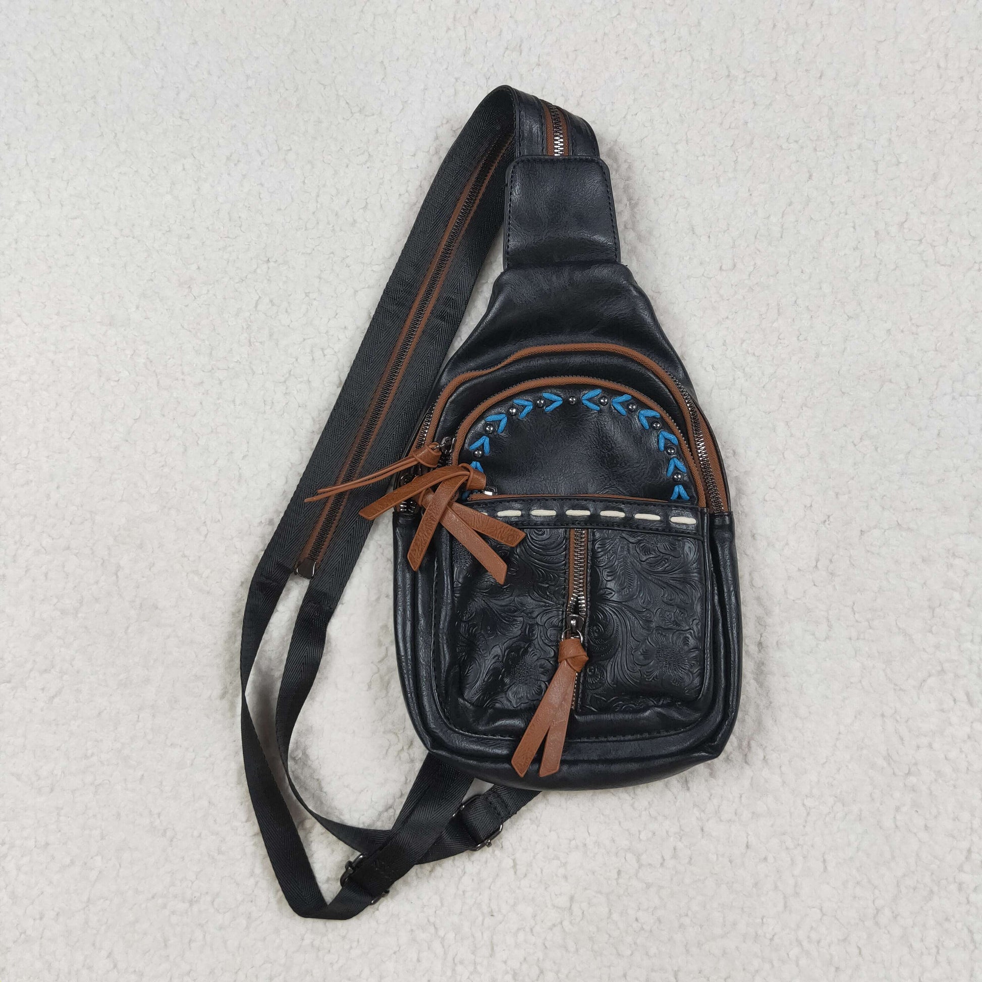USA-Shop BA0332 Black Flowers Zipper Western Leather Back Bags