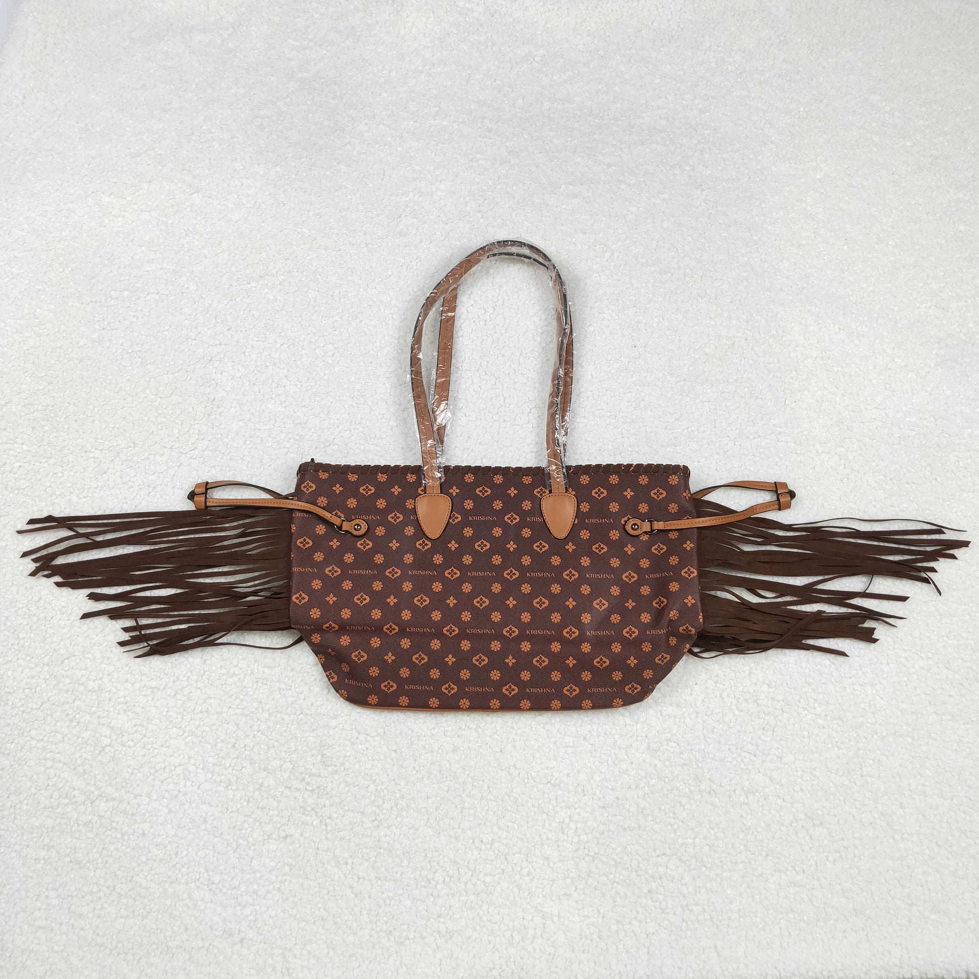 USA-Shop BA0374 Brown Flowers Zipper Western Leather Tassel Handbag