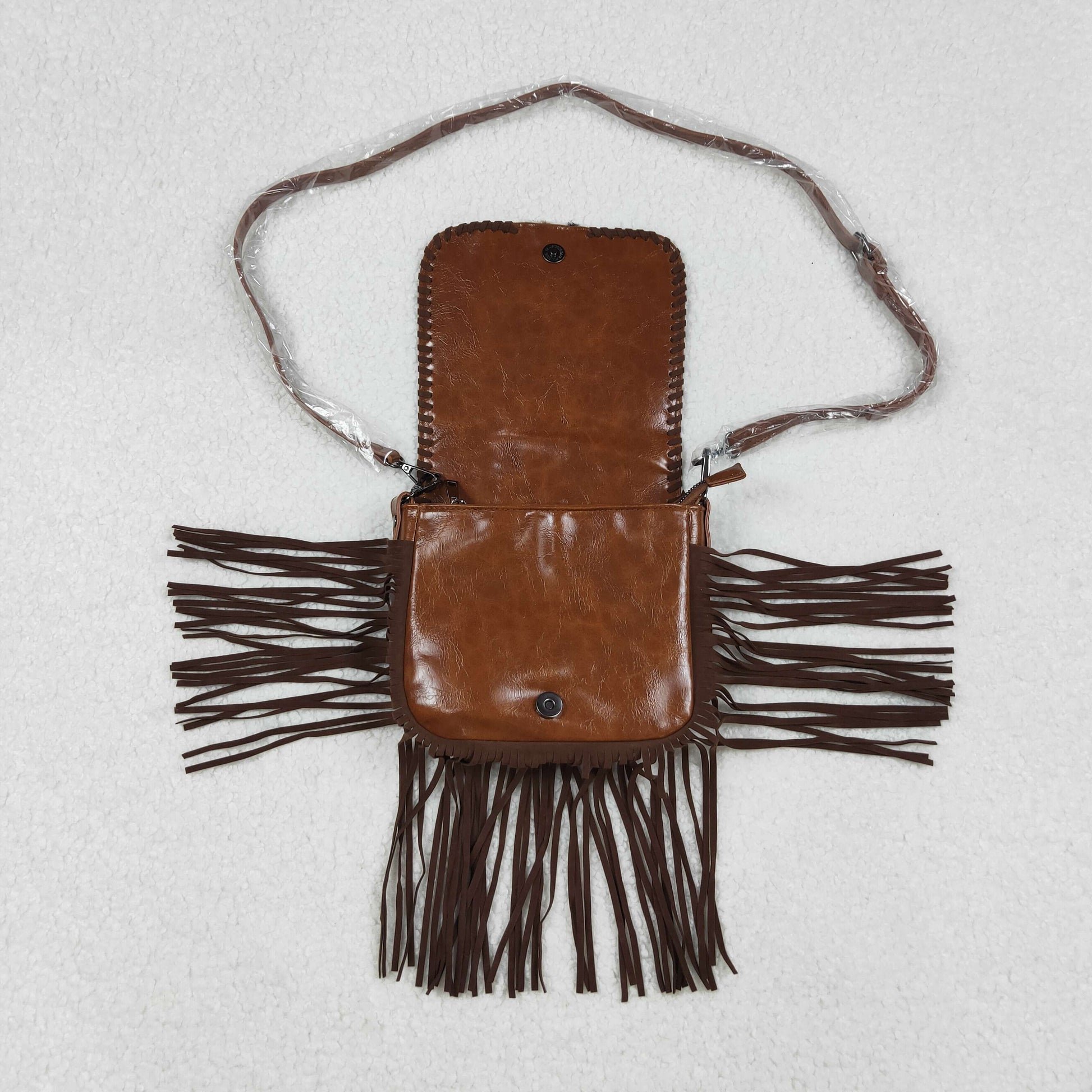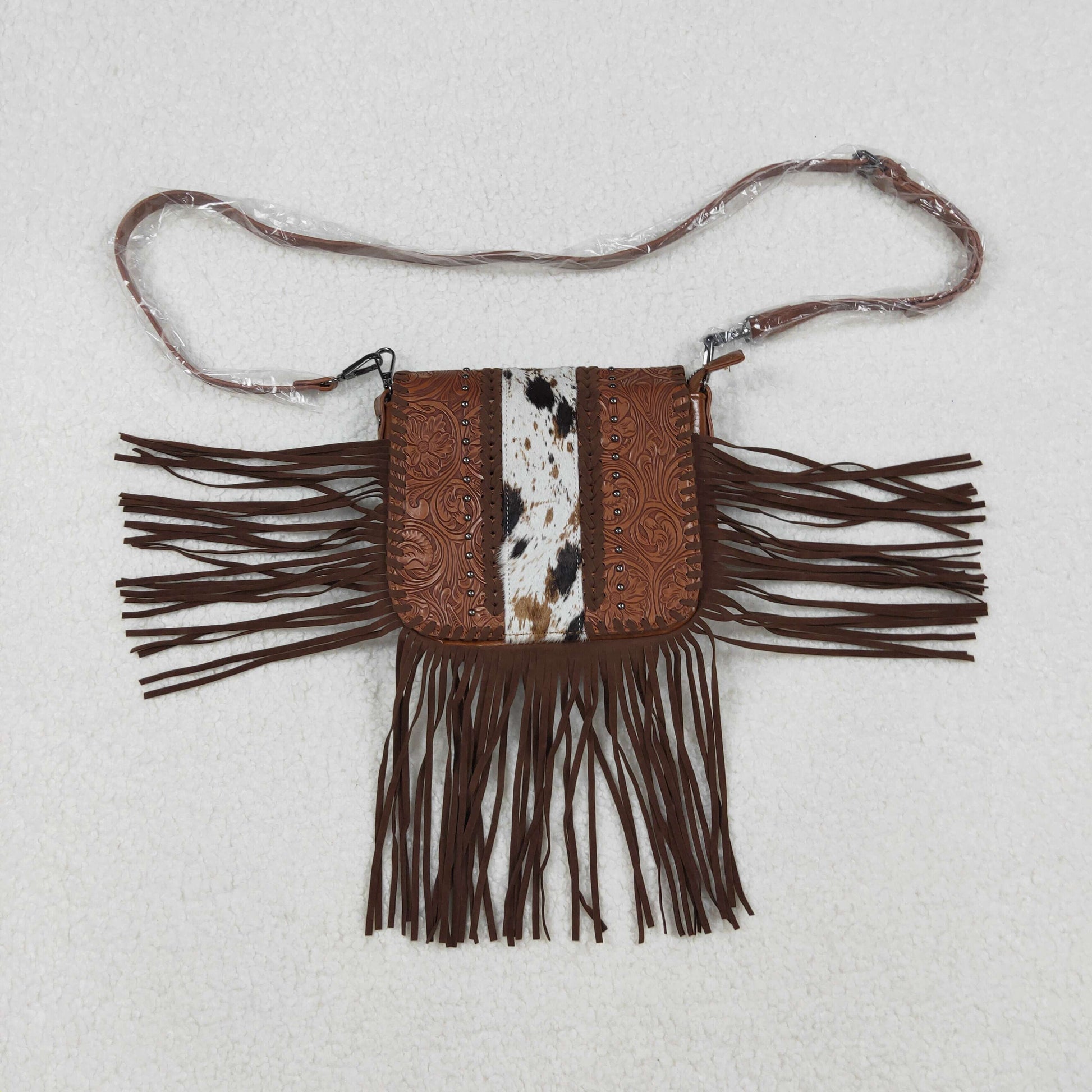 USA-Shop BA0375 Brown Flowers Cowhide Zipper Western Leather Tassel Shoulder Bags