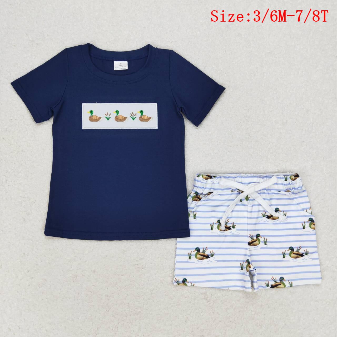 USA-Shop BSSO0884 Duck Embroidery Navy Top Pockets Shorts Boys Summer Clothes Set