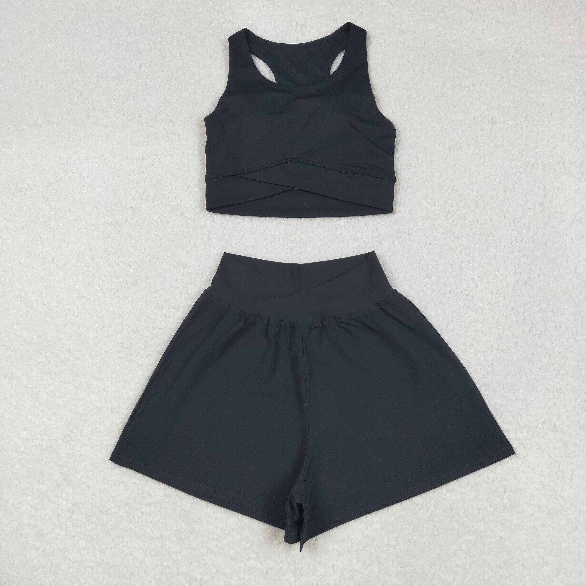 USA-Shop GSSO2648 Adult Black Color Tank Top Shorts Woman Summer Yoga Outfits