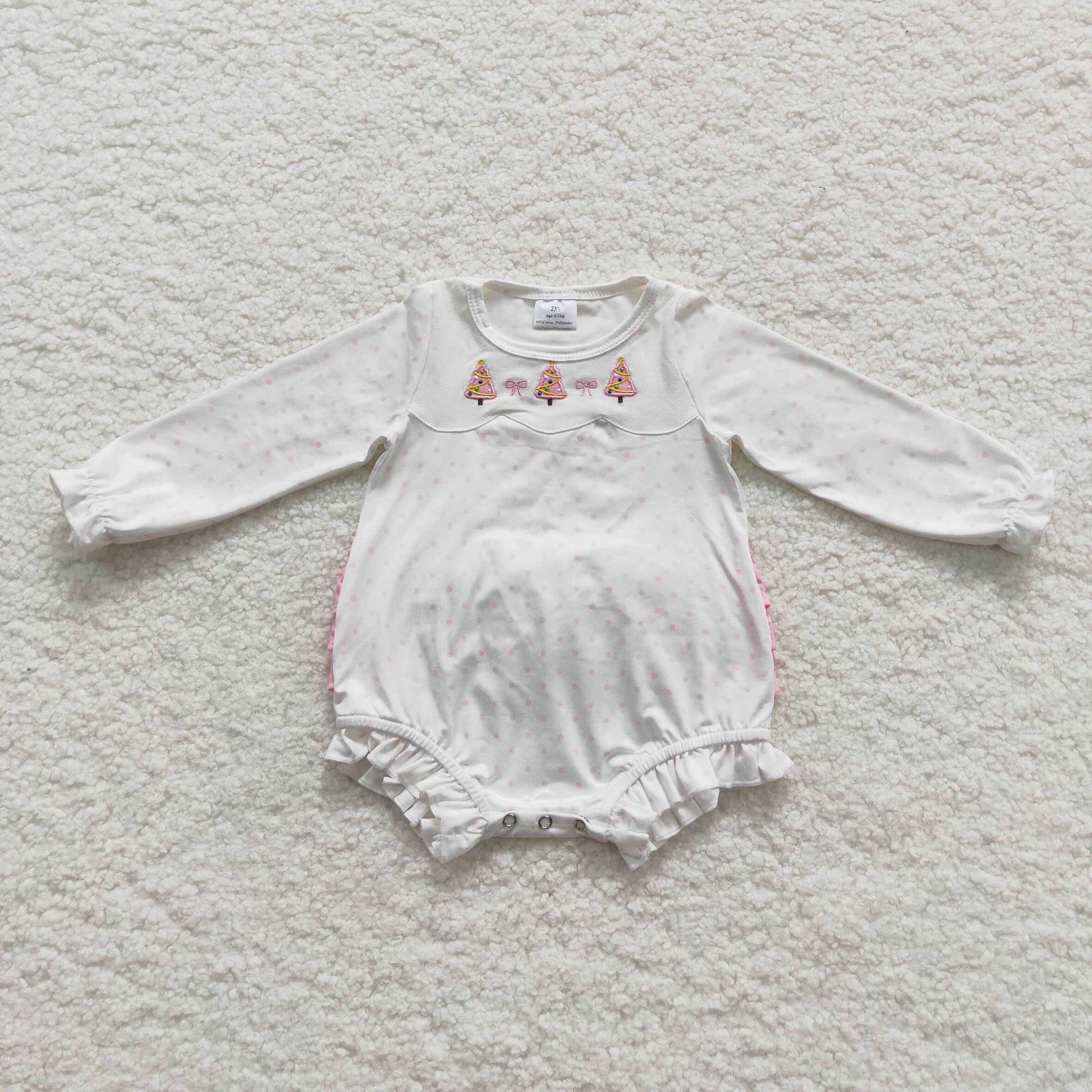 USA-Shop LR0392 White pink Christmas tree embroidery print baby girls bubble romper