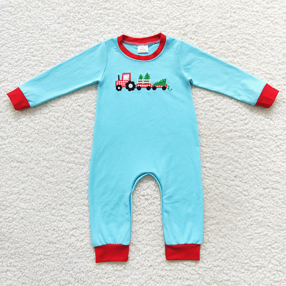 USA-Shop LR0500 Tree Truck Embroidery Blue Baby Boys Romper