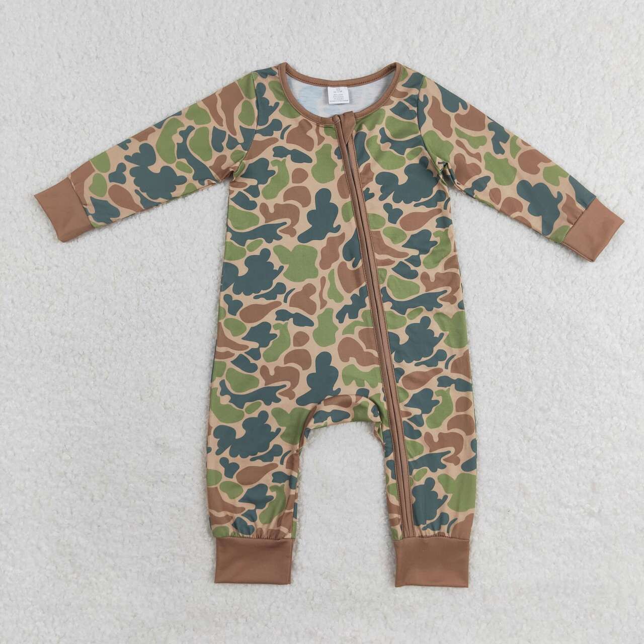 USA-Shop LR1203 Green Brown Camo Print Baby Boys Fall Bamboo Sleeper Zipper Romper