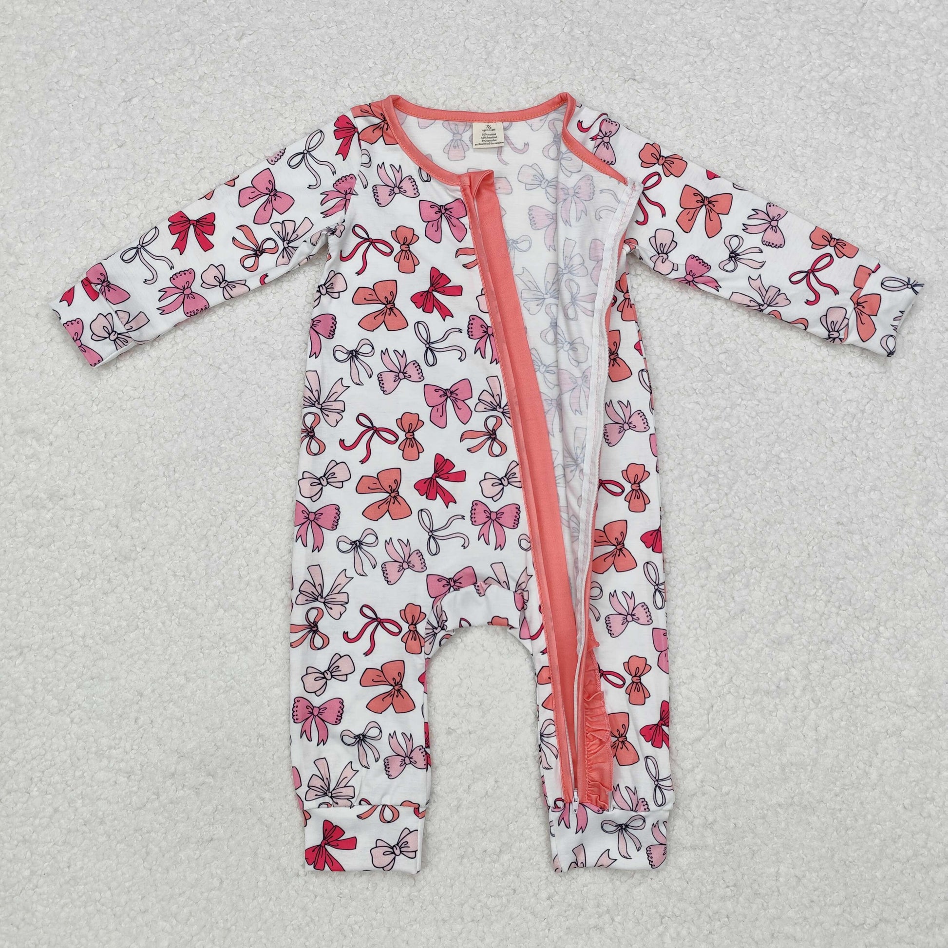 USA-Shop LR1905 Pink Bows Print Baby Girls Bamboo Sleeper Zipper Romper
