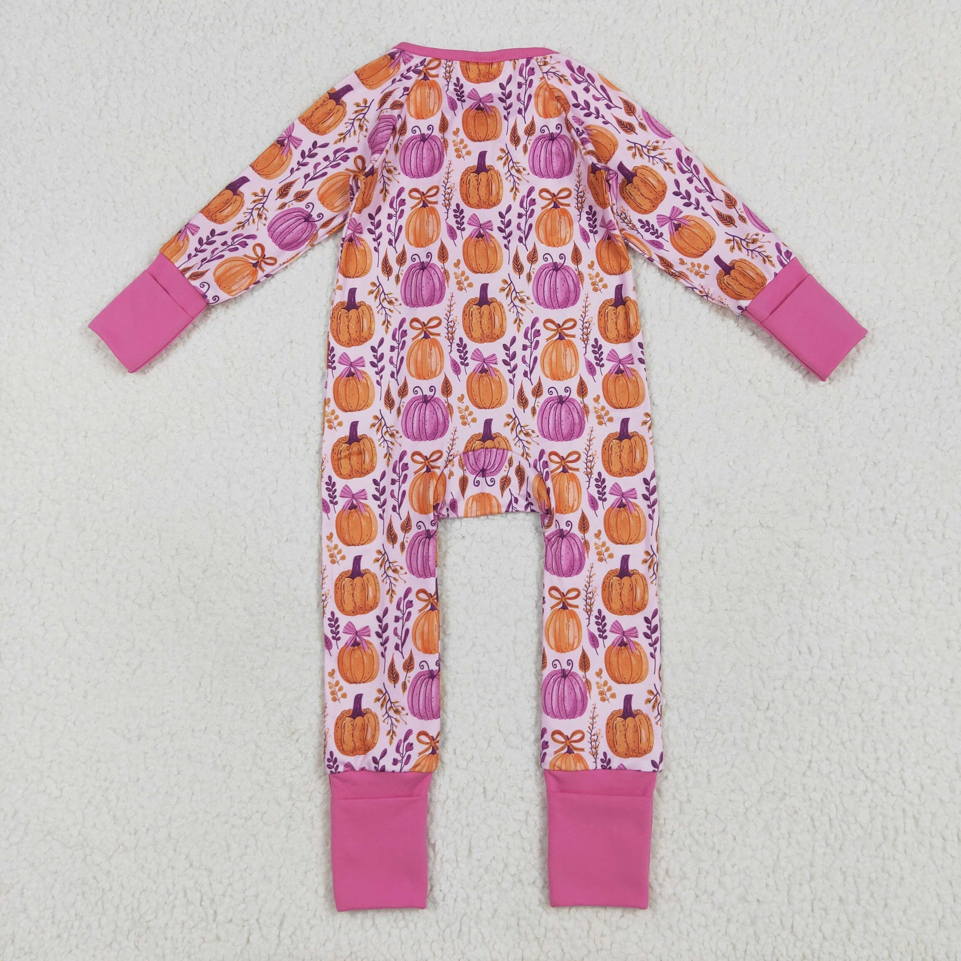 USA-Shop LR2270 Pumpkin Bows Print Baby Girls Fall Zipper Sleeper Romper
