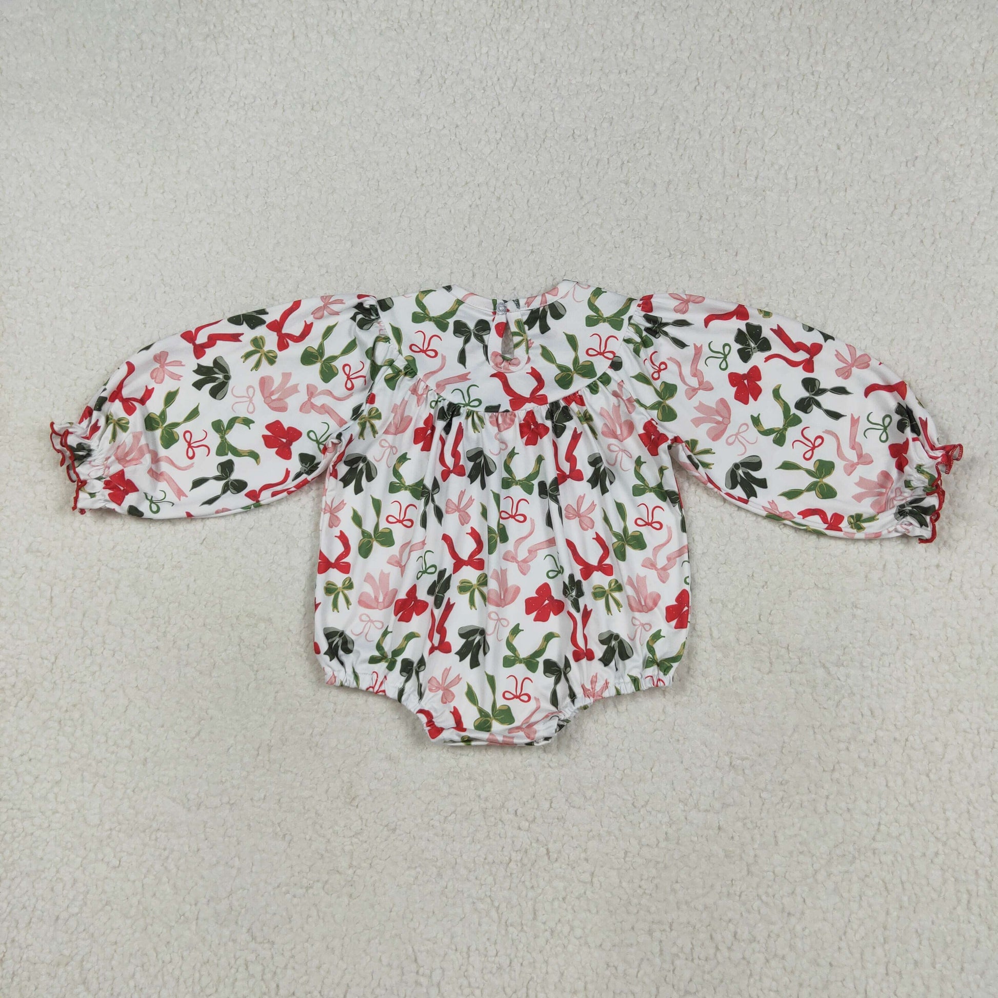 USA-Shop LR2276 MERRY CHRISTMAS Embroidery Red Green Bows Baby Girls Smocked Romper