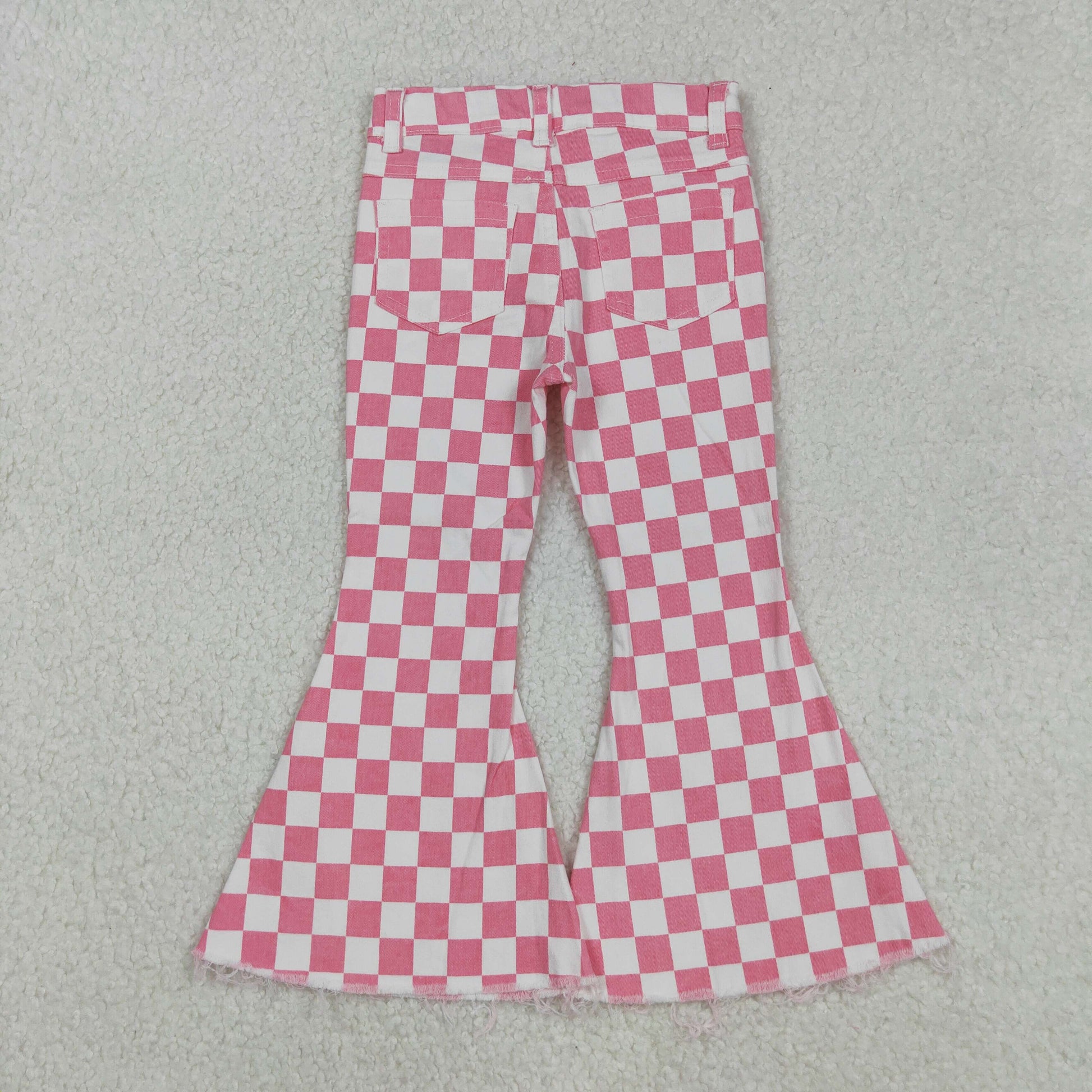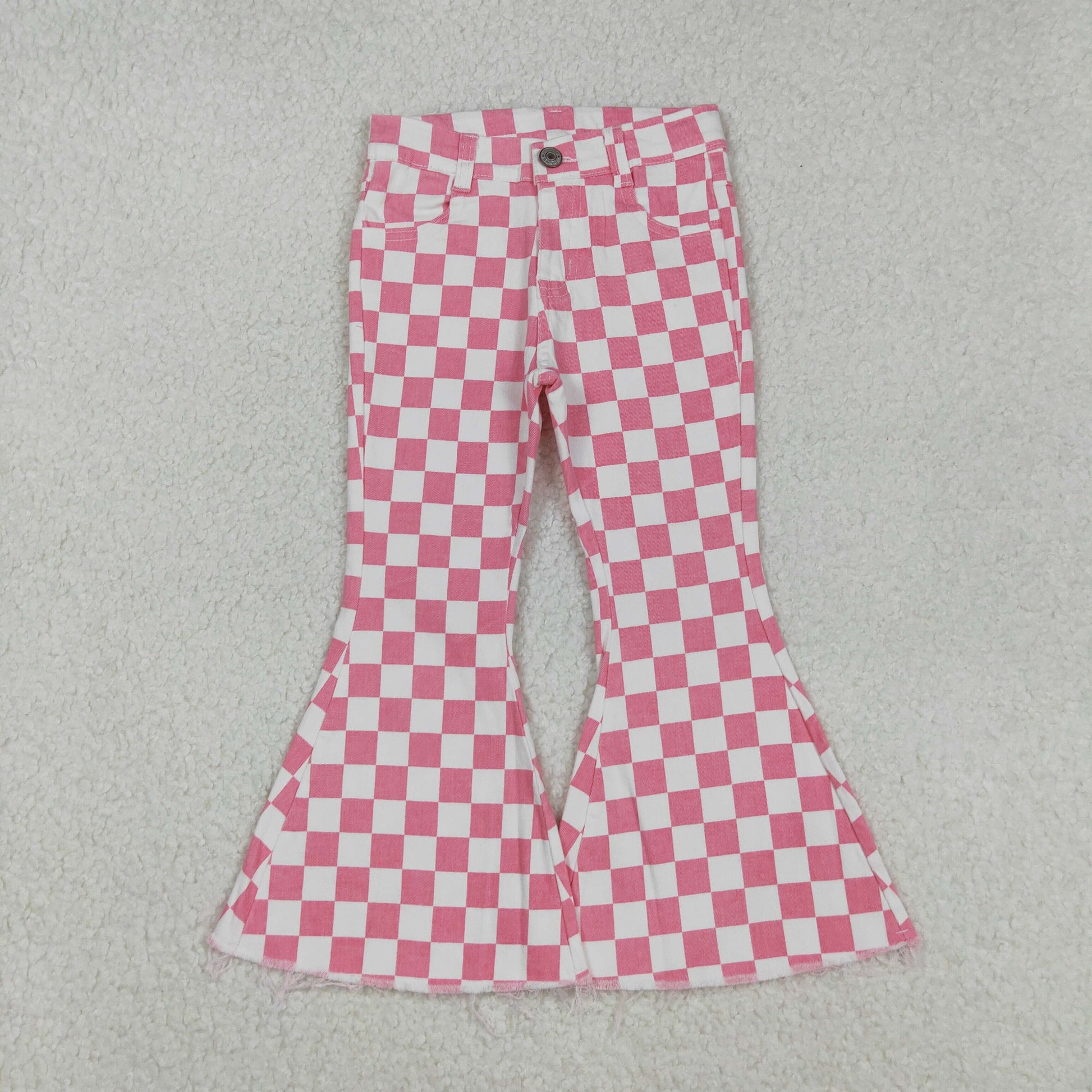 USA-Shop P0348 Pink Plaid Denim Bell Bottom Jeans Girls Pants
