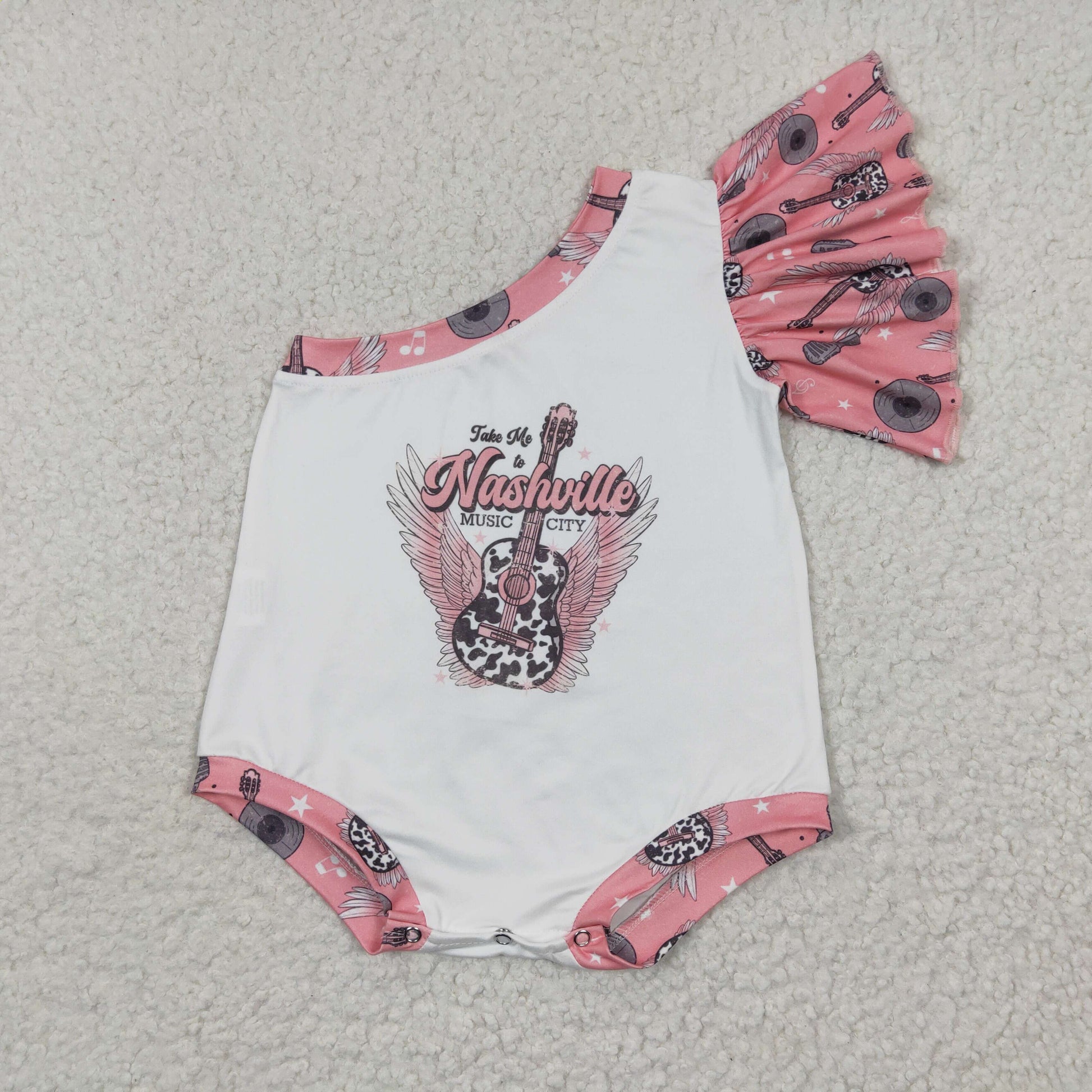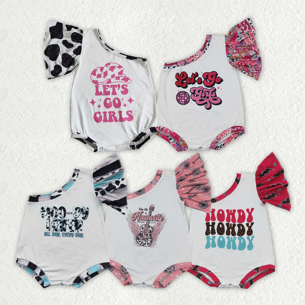 Western Print Baby Girls One Shoulder Summer Romper Sisters Wear